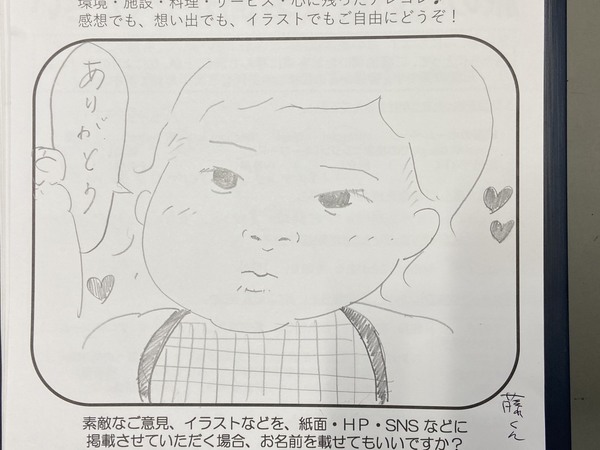 紋屋でお客様にお渡ししているアンケートはフリースペース。コメントだけでなく、イラストや部屋からの風景画を描かれる方もいらっしゃいます。
